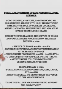 “THE BURIAL ARRANGEMENT FOR PRINCESS ALLWELL ADEMOLA