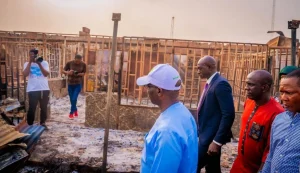 Edo State Governor, Monday Okpebholo, on Monday evening paid an on-the-spot assessment visit to Ekpoma following a devastating overnight fire that destroyed several shops built by the Police Officers’ Wives Association (POWA).