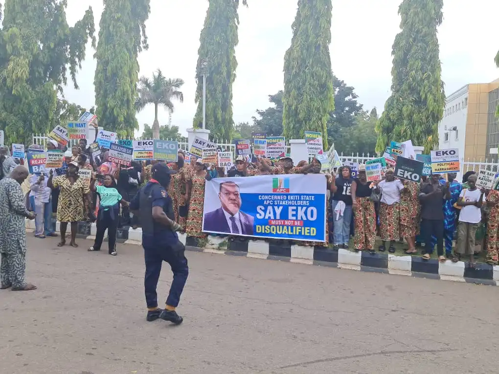 A significant protest unfolded today at the All Progressives Congress (APC) Secretariat in Ado-Ekiti, Ekiti State, as supporters of disqualified governorship aspirant, Kayode Ojo, expressed their dissatisfaction with the party’s decision to exclude him from the upcoming primary election.
