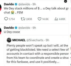 The drama unfolded on 𝕏 (Twitter) after a fan suggested that the singer’s supporters—popularly called 30BG—needed a more coordinated system.